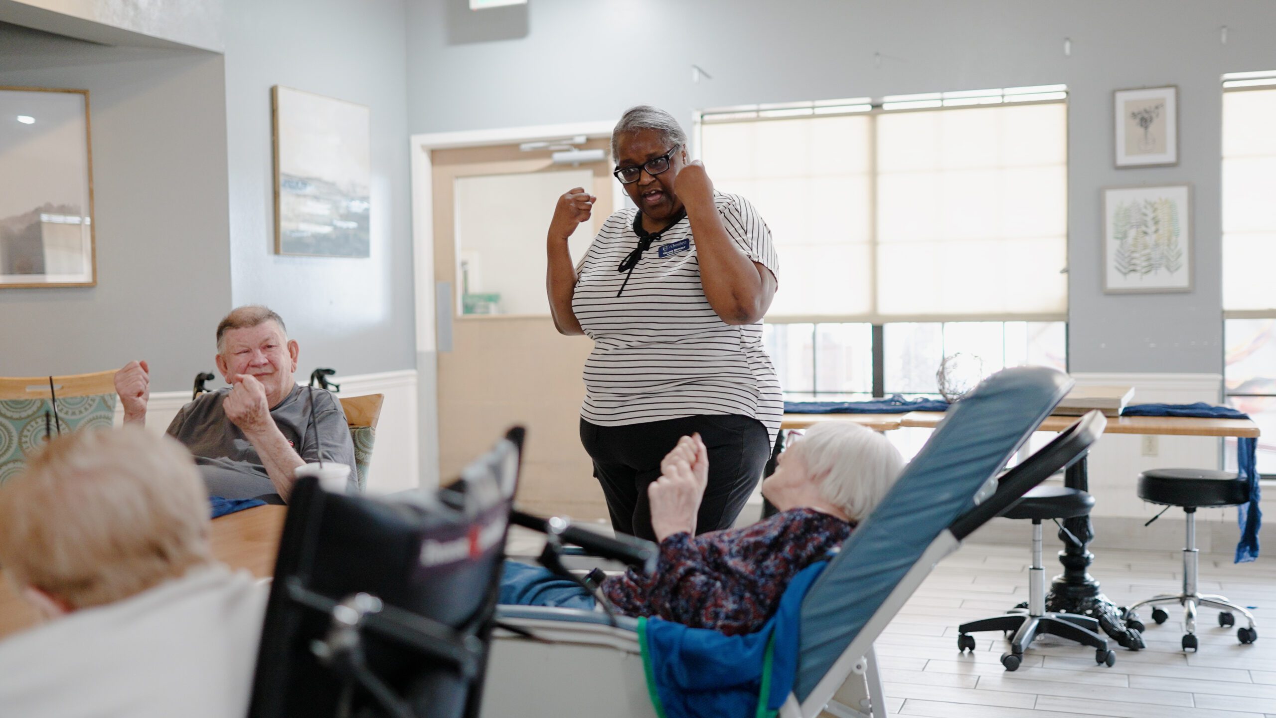 At Chambers, we are committed to keeping our guests happy by offering daily opportunities for entertainment and socialization. With a diverse and engaging calendar of activities, we ensure that both long-term care and short-term care stays are filled with meaningful experiences and enjoyable events. Those in need of our memory care services also have specialized daily activities created to help maintain cognitive function and improve mood. From social gatherings to recreational programs, there’s always something to look forward to.